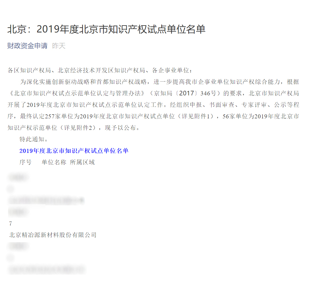 2019年12月下旬,北京精冶源新材料股份有限公司(簡稱:精冶源;股票代碼:831091)歷經(jīng)嚴(yán)格而規(guī)范的書面審查、專家評審、公示等多項程序,被北京市知識產(chǎn)權(quán)局認(rèn)定為2019年度北京市知識產(chǎn)權(quán)試點單位。 此次認(rèn)定要求企業(yè)屬于知識產(chǎn)權(quán)密集型產(chǎn)業(yè)領(lǐng)域,有持續(xù)創(chuàng)新活動,有一定數(shù)量的專利申請且近三年專利實施率不低于40%等多…